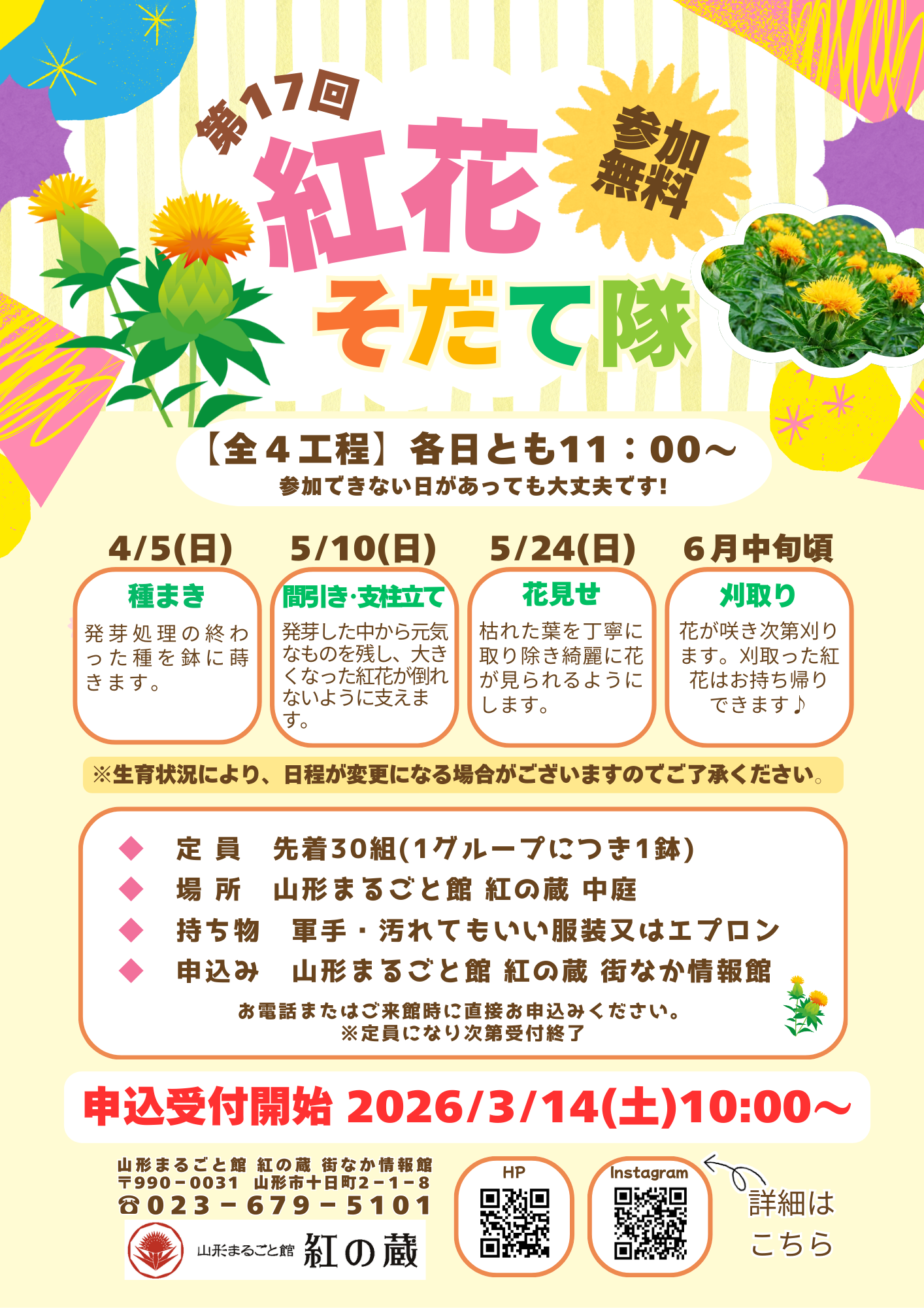 4. 【イベント】第17回紅花そだて隊 3/14~参加者募集!